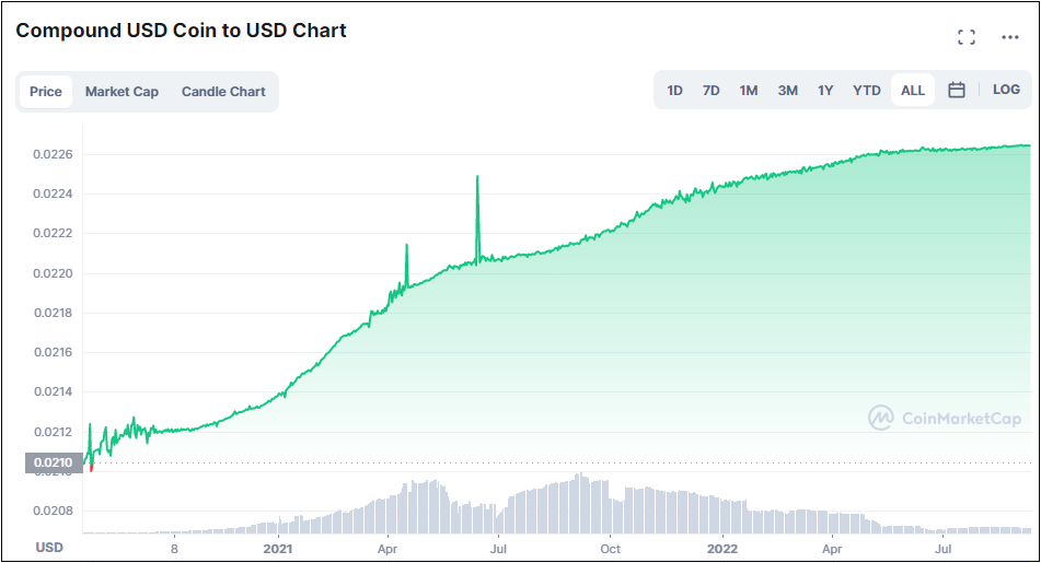 The revenue that Yield DTFs accrue comes from their collateral baskets, including tokenized outputs from DeFi protocols such as cUSDC (Compound USDC), aDAI (Aave DAI), or various AMM LP tokens. These tokens are designed to increase monotonically (ever-increasing) against their base tokens, as they are pegged to the value of the base token + any borrowing/trading fees paid in the relevant pool.